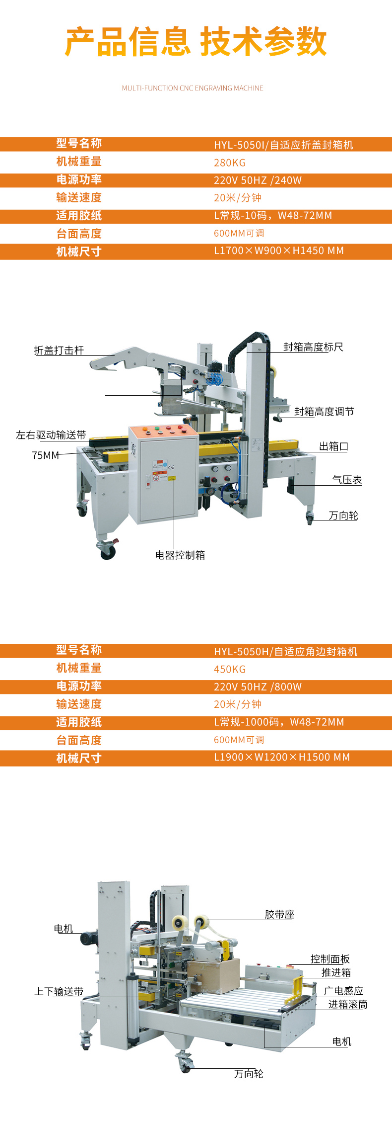 • 型号:5050I+5050H自适应折盖角边封箱机