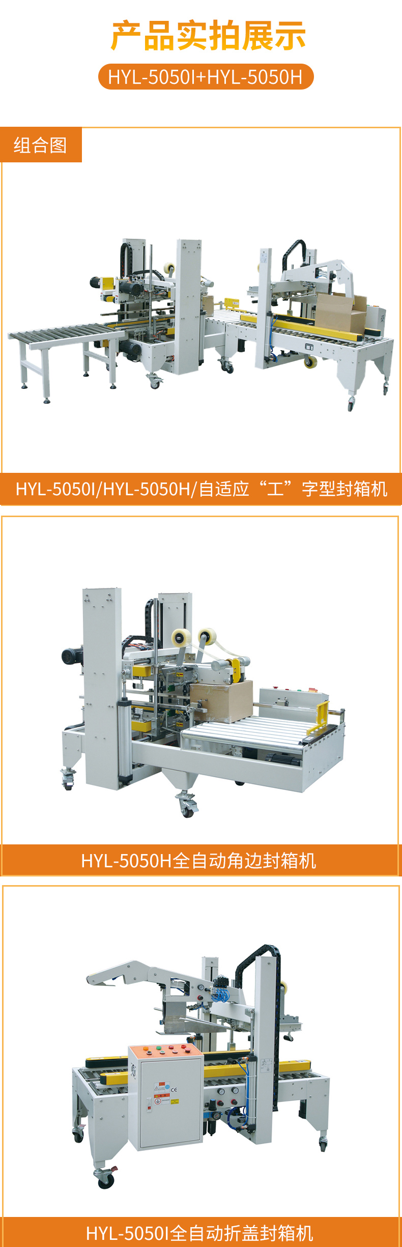 咨询留言: 5050I+5050H自适应折盖角边封箱机